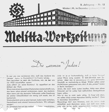 6. Mai 1941 unter der Überschrift „Die Goldene Fahne der Melitta-Werke – Der erste Nationalsozialistische Musterbetrieb des Kreises Minden“ unter anderem Folgendes zu lesen: