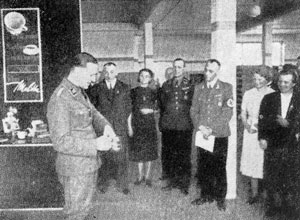 Abb.: Horst Bentz (links) in SS-Uniform führt den Melitta-Filter vor. [Foto aus: Melitta-Echo 3/1941]