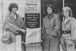 1989 Mindener Tageblatt vom 20.10.1989 Ehrung für Frauenrechtlerin - Grüne enthüllten gestern Gedenktafel für Sophie Meyer Minden (um). Eine Ehrentafel zum Gedenken an Sophie Meyer brachten gestern Mitglieder